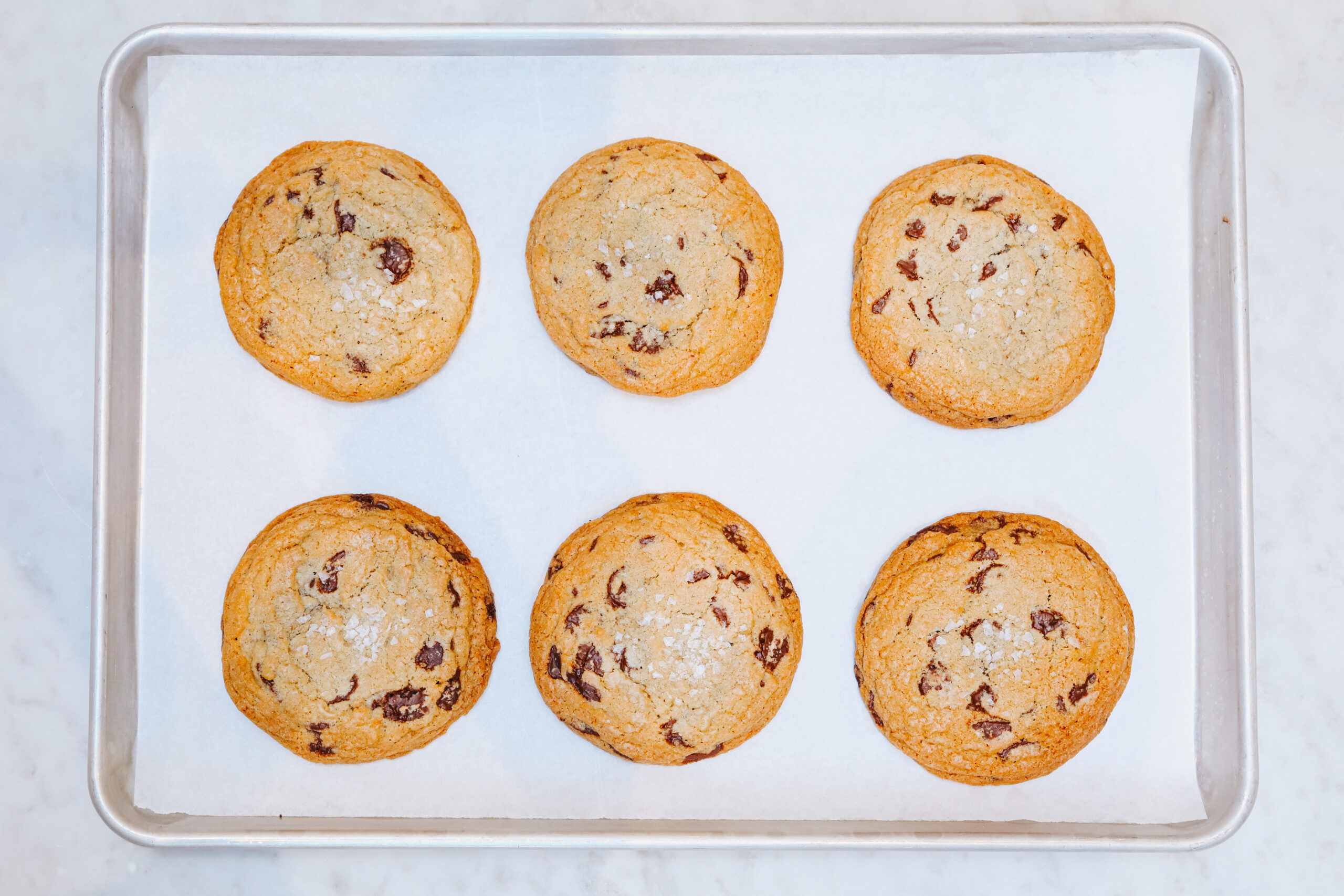 Remove the cookies from their packaging and place 6 cookies evenly spaced on your sheet trays. If you only have one tray, bake up to 5 at a time—they will spread!
